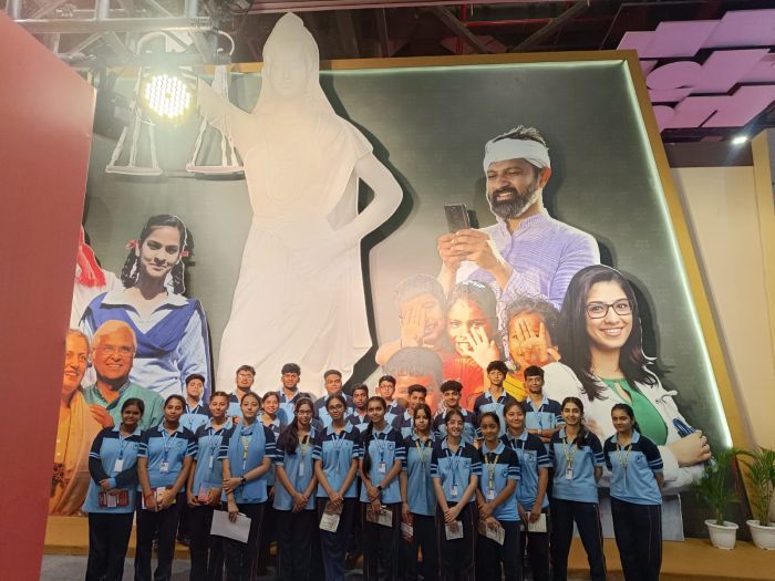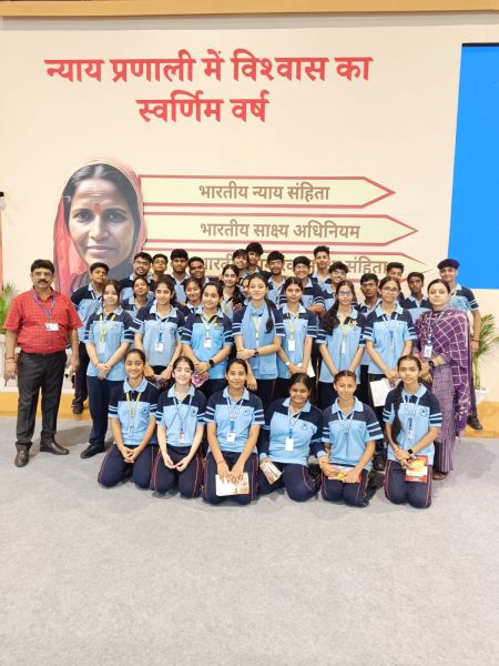 A group of students from Class 10 and 11 visited Bharat Mandapam, New Delhi, on 08.07.2025 as part of an educational tour to gain awareness about the newly reformed three criminal laws in India. The visit aimed to enhance students’ understanding of the legal system and recent changes in the Indian Penal Code. During the session, legal experts and officials explained the key highlights of the
