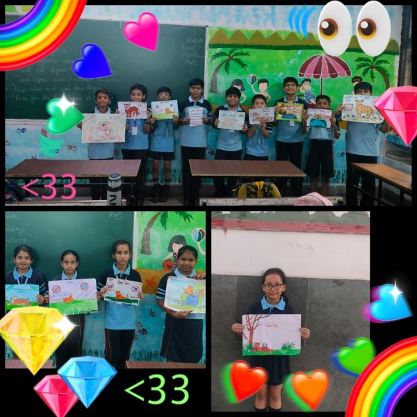 On the occasion of International Tiger Day, observed on 29th July 2025, a Poster Making Activity was organized for students of Classes 3-5 to raise awareness about the importance of tiger conservation. Students enthusiastically participated in the activity and expressed their concern for saving tigers through creative and impactful posters. Using vibrant colors and powerful slogans like “Save Tigers, Save Wildlife”, “Roar for the Tigers”, and “Only You Can Save Them”, the young artists highlighted the urgent need to protect this majestic species from extinction. The activity not only allowed students to showcase their artistic talents but also educated them about the role of tigers in maintaining ecological balance. Teachers praised the students for their meaningful efforts and thoughtful messages. The posters were displayed in the school corridors to spread the message of tiger conservation among the larger school community. The event was successful in instilling a sense of responsibility and love for wildlife in the hearts of the young learners.